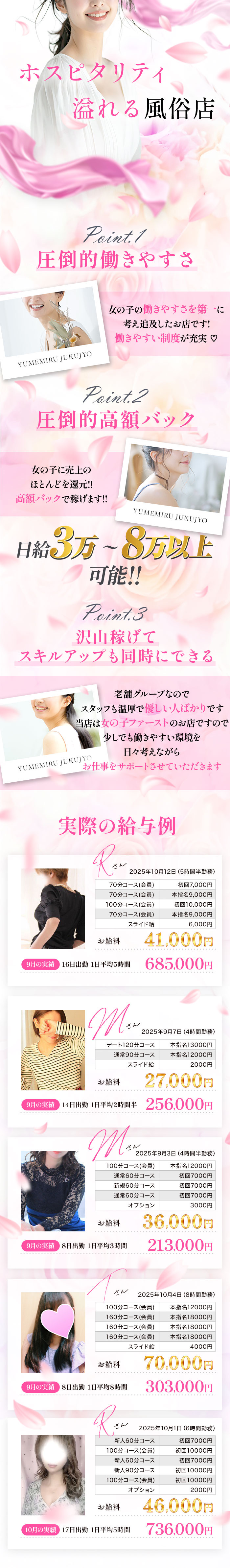 口コミ投稿30代~50代の方必見!! 標準体型で30代〜49歳くらいまでの方、かなり稼いでいただけます もちろん、50歳以上の方も大歓迎です。 未経験⭐︎人妻店からの移籍⭐︎大歓迎 女の子達が働きやすい環境をサポートするお手伝いをさせてください\(^-^)/