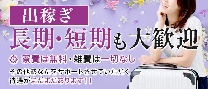 | 勤務日・勤務時間 | 完全自由出勤なので貴女の空いている時間でOK(週1日でも、あなたの都合の良い曜日に! 月1日でもOK!ご相談ください。)県外や遠方の方は、週末だけや祝日を利用したお泊り出勤もOK! |