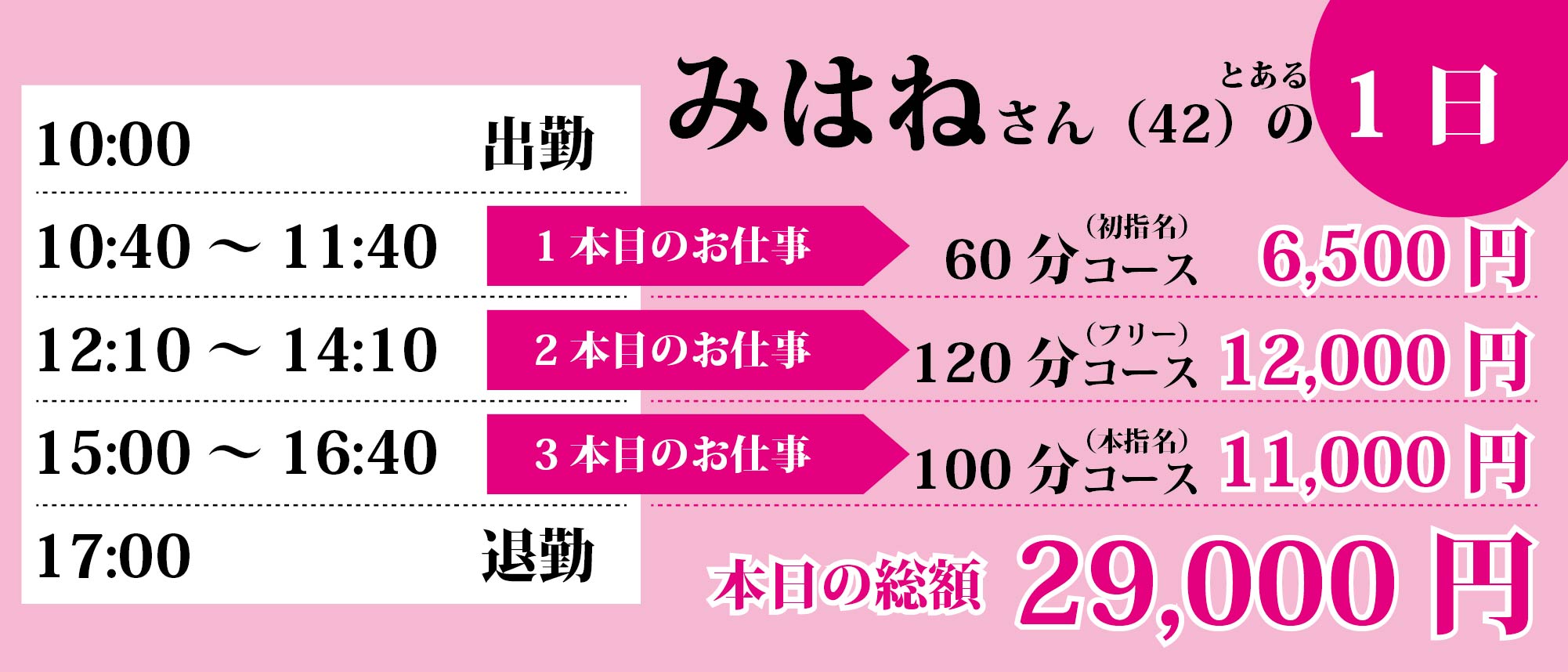 | 給与 | ■給与 ・日給40000円以上可 ■平均給与例 6時間待機 ・10000円~30000円以上 10時間待機 ・20000円~50000円以上 ■POINT ・月給80万以上稼ぐ女性も多数在籍 ・下着姿の撮影はありません(妊娠線・傷跡が気になりません) ・自宅待機もOK ・自走でのお仕事OK(送迎も勿論可能です) ・雑費なし ・寮費無料・交通費全額保証 30代後半・40代・50代だからこそ当店は稼げます。 圧倒的な集客力で昼夜問わず、安定したお仕事量をお約束致します。 |