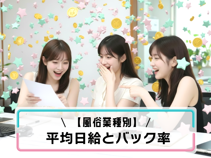 下の表は、風俗業種別の平均日給とバック率の比較表です。
