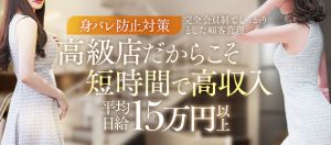 求人担当の朝倉と申します。 30~40代の大人女性がメインで在籍している当店は 多数の顧客様のご愛顧を受け、 ご来店数は2017年のオープン以来常に右肩上がり。 高級店だからといって、採用基準が高いということはございません。 面接時には女性らしさやマナー、内面性を重視しておりますので 一般企業のOLさん、主婦さんもご活躍中です。 お仕事の中でやりがいを見つけ、女性としての魅力をより培っていただきたい。 その思いから、最高級のお仕事環境とサポートを徹底しております。 ~キャストへ上質なおもてなしを~ 【1.】圧倒的な高額報酬 心身ともに負担を少なく、月収150万円以上稼いでいただけます。 ロングコースが人気の為、 効率の良さをご体感いただける事でしょう。 【2】完全自由出勤制 本業への負担にならない為にも、 「1日お一人の接客」「お仕事終わりの3時間」など、 貴方のライフスタイルに合わせてご勤務いただけます。 また、事前にご予約をいただいた会員様のみ接客するスタイルも可能です。 【3.】お顔出し一切なし 在籍キャスト皆様のプライバシーをお守りするべく 「あえてお顔出しをしない」経営方針を貫いております。 また、パネル撮影時下着姿での撮影は、一切行っておりません。 【4.】完全会員制 会員様は社会的地位の高い、紳士的で落ち着いた方ばかり。 身元の分からない方、マナーを守れない方のご利用は固くお断りしております。 【5.】自宅待機 事務所、ご自宅、寮などあなたのご希望に合わせて 待機方法をお選びいただけます。 また、出退勤の際にはご希望場所まで無料で送迎を行っております。 業界経験の長い、ベテランドライバーの運転で あなたを安全に目的地までお送りいたします。 その他、様々な待遇をご用意しております。 まずはお給料システムやお仕事内容など ご質問・ご相談がございましたら、お気軽にお問い合わせくださいませ。 貴女からのご応募、心よりお待ちしております。