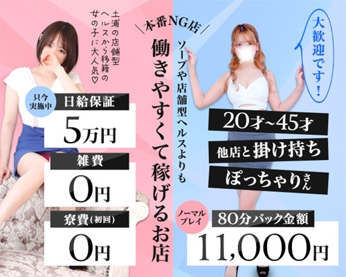 体入5日間のお仕事を「フルバック」いたします! お客様が支払ったコース料金が全額あなたのものに☆ 100分の手取りは通常11000円ですが、フルバックプランの手取りはなんと!21000円! 1日に3件のお仕事に付いた場合は通常の稼ぎより、プラスで30000円! 5日間で考えたら…なんと通常の稼ぎより!プラスで150000円(*’▽’)★ 超おススメなプランですが、期間限定なので興味があればぜひご応募ください♪ 土浦人妻花壇は… ★個室待機室完備★ ★雑費などの引かれものなし★ ★罰金・ノルマ一切なし★ さらに!!!今なら「入店お祝い金1万円」もついてくる☆ 「今在籍しているお店がヒマで移籍を考えている」 「どうしてもお金が必要」 などなど、どんなご相談でも大歓迎です♪ お気軽にお問い合わせくださいね(*^^*) 【 土浦人妻花壇の良い所♪ 】 ●待機所は完全個室待機となっておりますので、ストレスなど無くお仕事をしていただけます。 (個室には全室TV完備&Wi-Fiも繋がるのでネットもOK!) ●タバコを吸わない、匂いが苦手な方でもご安心ください!完全分煙です。喫煙する方は喫煙所が完備されております! ●昼間のお仕事や他店との掛け持ちも大歓迎です。ライフスタイルの合わせてお仕事をしていただけます♪ ●突然の体験入店も大歓迎でございます♪「今日お金が欲しい!」にお答えします! ●シングルマザーさん大歓迎です!近隣に託児所あります♪ ●出勤のノルマがあると子供もいるし、物理的に無理なことも...そんな心配は一切必要はありません!完全自由出勤です♪お子さんの急な発熱でもスムーズに早退出来ます! 【 アクセス良好な立地 】 北関東中心部の【 土浦駅 】なのでアクセスが良好です。 東京駅からは特急で約53分 上野駅からは特急で約46分 品川駅からは特急で約60分 千葉の我孫子駅から約40分 水戸駅から約30分 と電車でも通いやすいのが特徴です。事務所の場所も土浦駅西口からは徒歩3分なので通勤も楽チンです♪ また、無料駐車場も完備! お車での通勤も大歓迎でございます(*^^*) 女性の事を一番に考え、心身共に働きやすい環境をご用意しております☆