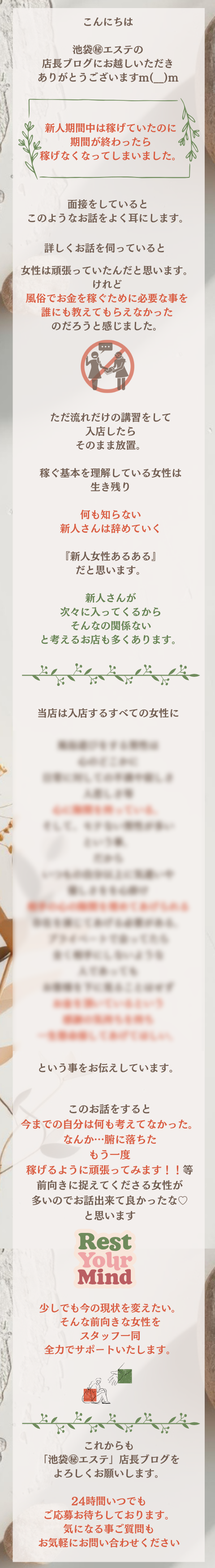 新人期間中は稼げていたのに期間が終わったら稼げなくなってしまいました 池袋㊙エステフル勃起 店長ブログ