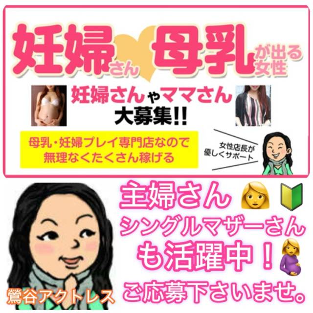 当店の求人をご覧いただきありがとうございます。 このたび女性コンパニオンさん(妊婦さん・母乳の出る女性も随時)を大募集いたします! 安心して働ける環境と実績であなたをしっかりサポートします。 《応募資格》 19歳以上の健康な女性でしたらどなたも大歓迎いたします。 経験の有無は問いません。 《勤務日時》 完全自由出勤制です。あなたのご都合に合わせて働いてくださいね。 面接時応相談♪ 《待遇》 アリバイ対策あり 罰金・ノルマなし 日払い可能 その他働きやすい環境が整っています。 気になることなどございましたらお気軽にお問い合わせください。 あなたのご応募をスタッフ一同心からお待ちしております! 【鶯谷Actress-アクトレス-】 ▼お問合せ LINE ID:09032223994 メール:recruit@af1.jp 電話:03-5828-5757 / 03-3842-1288