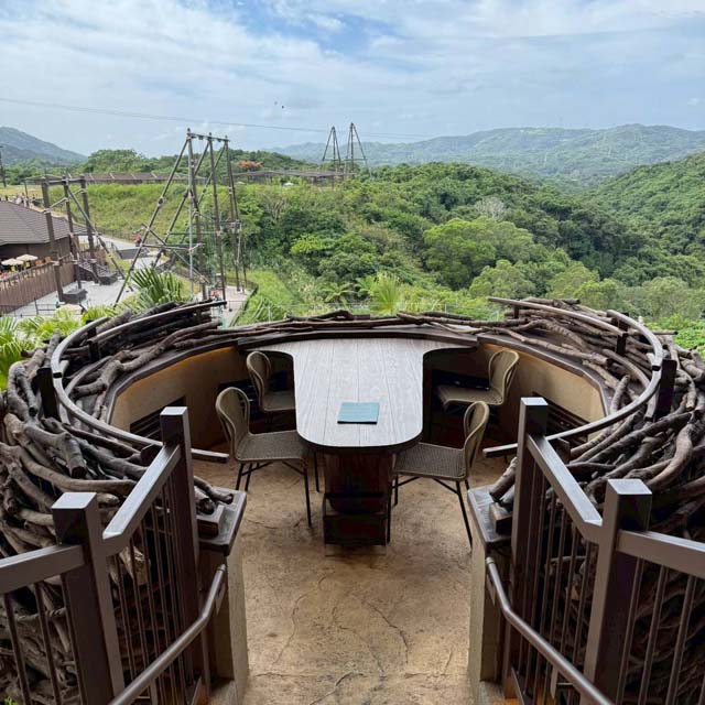 アトラクションに乗って鳥の巣みたいな所で食事をして大自然を感じながら露天風呂に入り大変満足しました。