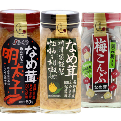 漬物や調味料、普通のスーパーには置いてないような物があり見ているだけでも楽しめるのですが、デパートリウボウの地下一階にあり、なめ茸明太子・なめ茸柚子胡椒・なめ茸梅昆布・いつでもなめ茸を購入しました。