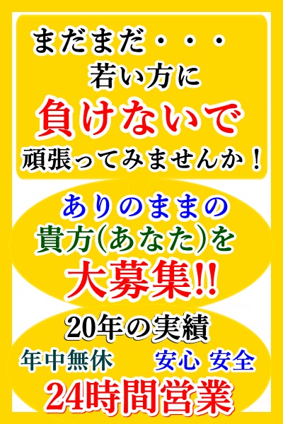 24時間営業 ★高額給料★ お給料は 多い方が いいですよね!! 若い方に負けないで 頑張って みられませんか!!