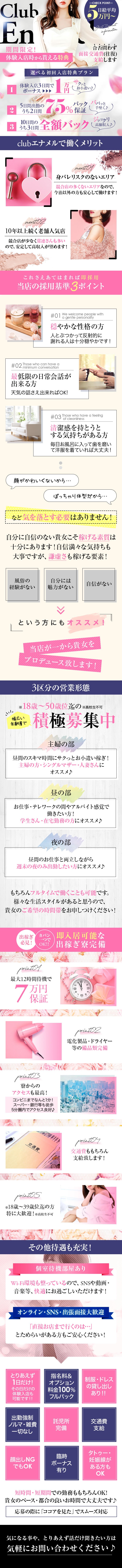 当店「CLUBエナメル」は今治エリアでダントツのシェアを誇っております。 店リピーターも多数抱えておりますので安定した収入を得ることができます! まずは質問だけでもOK! 女性店長が誠心誠意対応いたします!! 【給与】日給40000円以上 最低保証あり!面接時ご相談ください ※出勤状況により金額は変わる場合もございます。 --- まずは1日から体験入店も可能ですので、 気になった方がいらっしゃればお気軽にお問い合わせください。