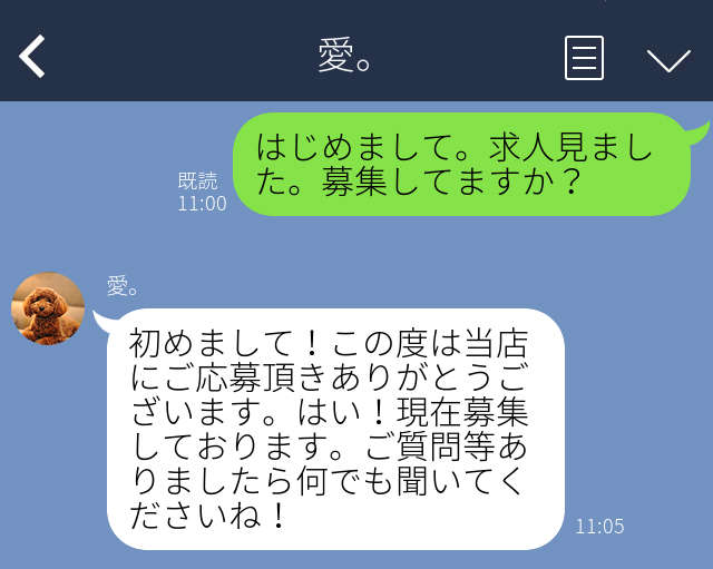 Point1‣まずは自分から連絡してください。友達に追加をしたら、必ず自分から「求人見ました」を書いてメッセージしましょう!