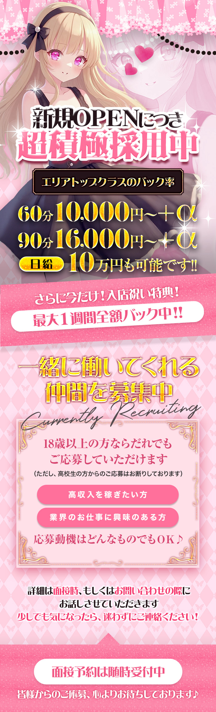 【急募!】現代のスタイルに合わせた働き方♪新キャスト大募集!!【新店】