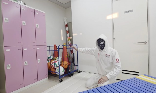 体育館倉庫のようなセットや