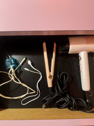 ドライヤー、ヘアアイロン、充電器もお部屋に置いてあります😮