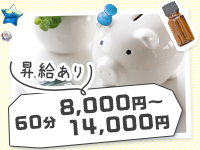 | 給与 | 手コキのみ1日6万円稼げる。オプションに「受け身」無し 日給60,000円以上 完全全額日払い制 60分 8,000円~19,000円 75分 10,000円~21,000円 90分 12,000円~23,000円 120分 14000円~27,000円 180分 22,000円~35,000円 本指名 2,000円 延長15分 2,000円 前立腺マッサージ 1,000円 キス 2,000円 ソフトタッチ 2,000円 スマートワンド 2,000円 トリップスキンフェラ 2,000円 オールヌード 5,000円 |